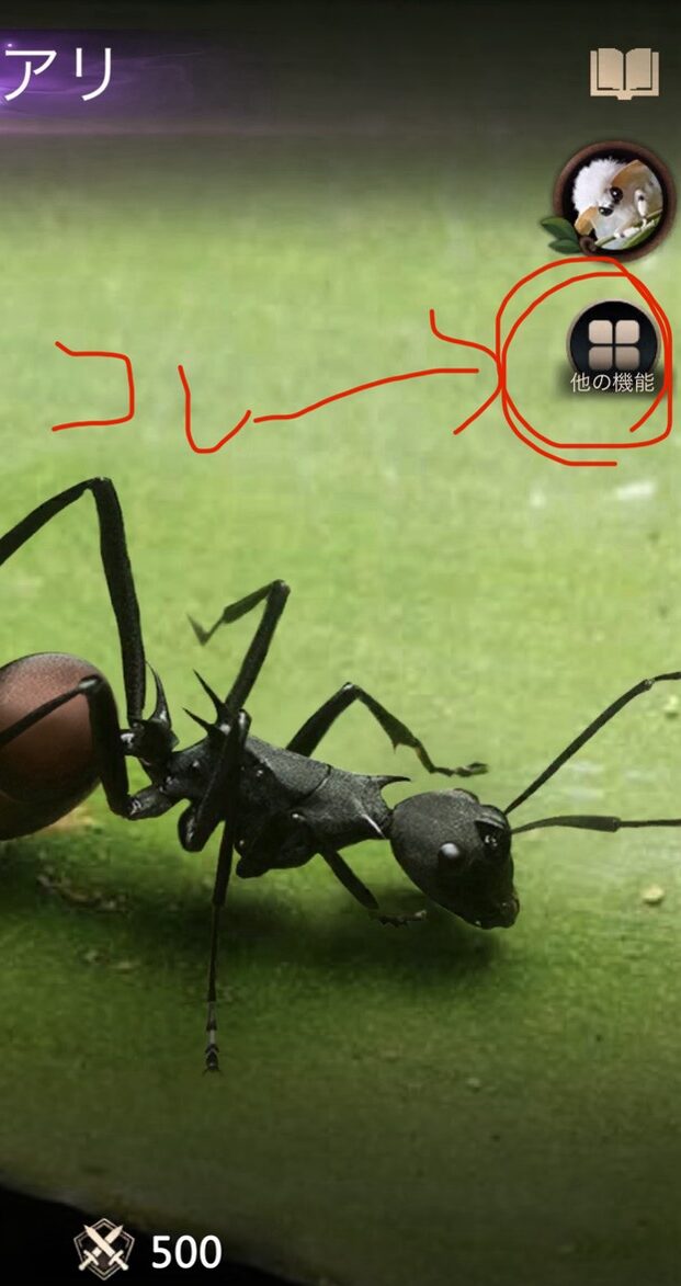 ⑪ワシのマークの下にある謎のアイコンを選択し、「特化アリ分解」で使用した変異体胞子を回収する。